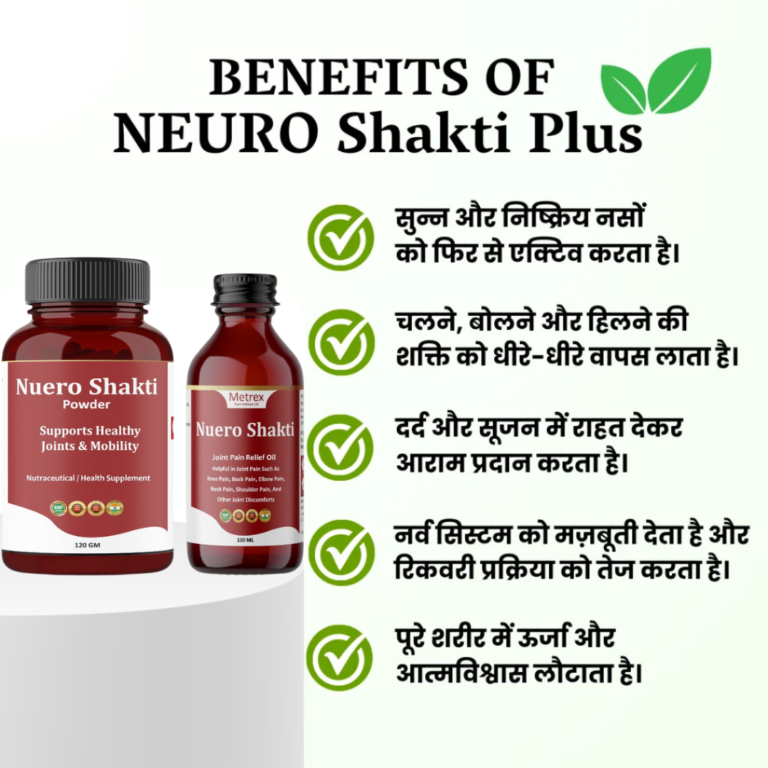 “NEURO Shakti Plus एक आधुनिक आयुर्वेदिक फॉर्मूला है जो नसों की मरम्मत कर, मांसपेशियों को ताक़त देता है और लकवे से जूझते शरीर में फिर से जान भरता है।”